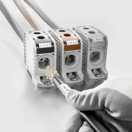 Weidmüller's WPD terminal blocks enable a simple, safe and cost-effective transition from aluminum wires or aluminum cables to copper wires within the switchgear.
