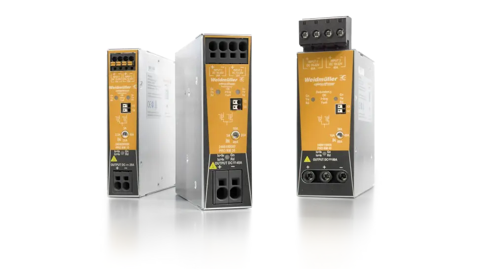 Optimise your power supply with accessories from the Weidmüller product range. For example, by creating a redundant power supply using our modules, you can protect your switch mode power supplies from failure of the 24 VDC control voltage. We have the right product for every requirement and can also help you identify the right solution for your needs.